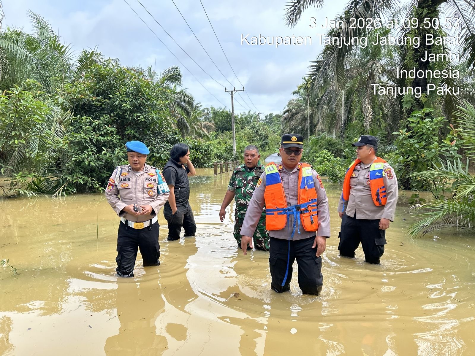 Curah Hujan Tinggi, Polsek Merlung Pantau Debit Air: Jalan Lintas Terendam Hingga 100 CM
