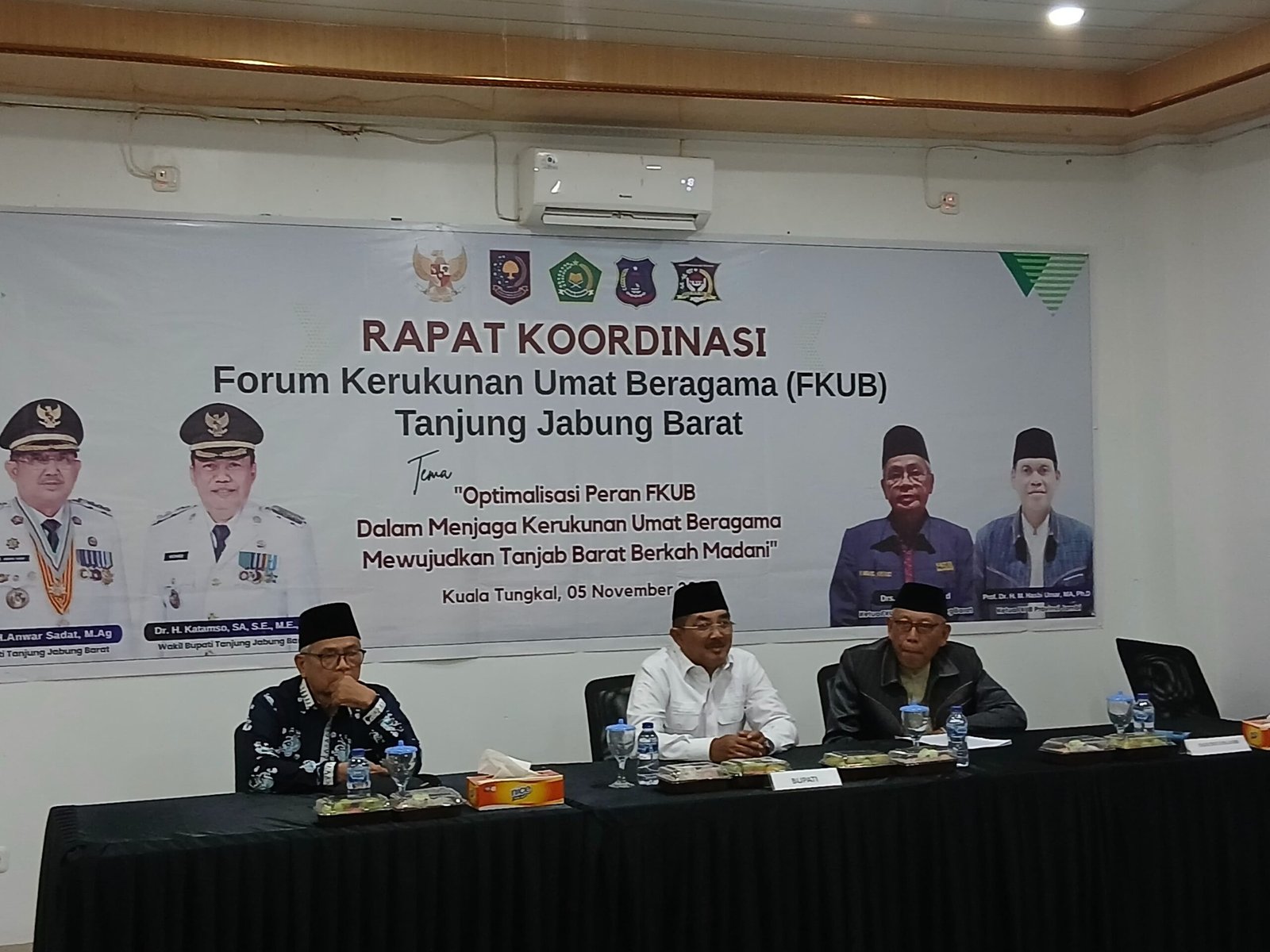 HITSTUNGKAL.COM — Forum Kerukunan Umat Beragama (FKUB) Kabupaten Tanjung Jabung Barat menggelar Rapat Koordinasi (Rakor) dengan tema “Optimalisasi Peran FKUB dalam Menjaga Kerukunan Umat Beragama untuk Mewujudkan Tanjab Barat Berkah Madani”, bertempat di Aula Hotel Grand Ar-Riyadh Kuala Tungkal, Rabu pagi (5/11/2025).